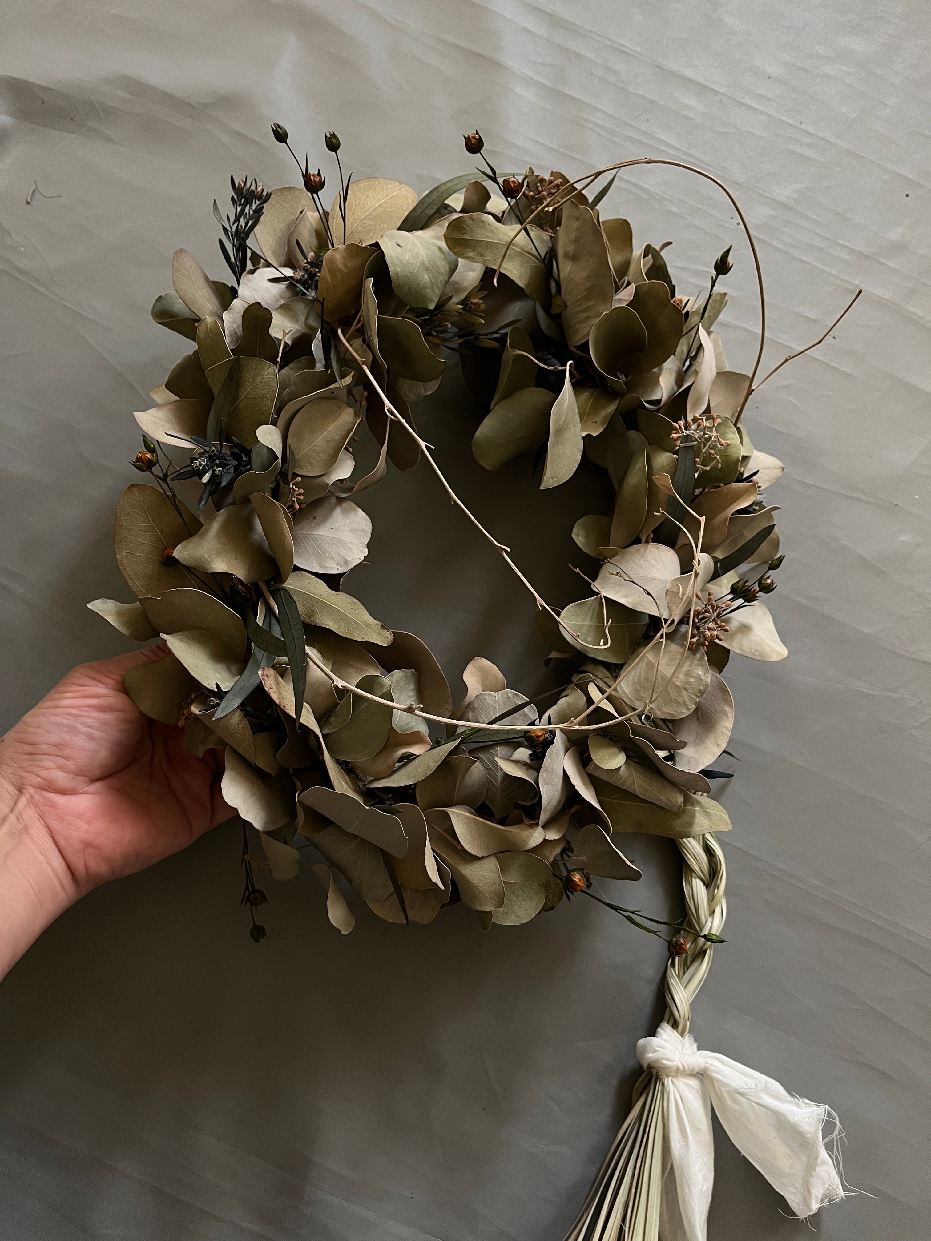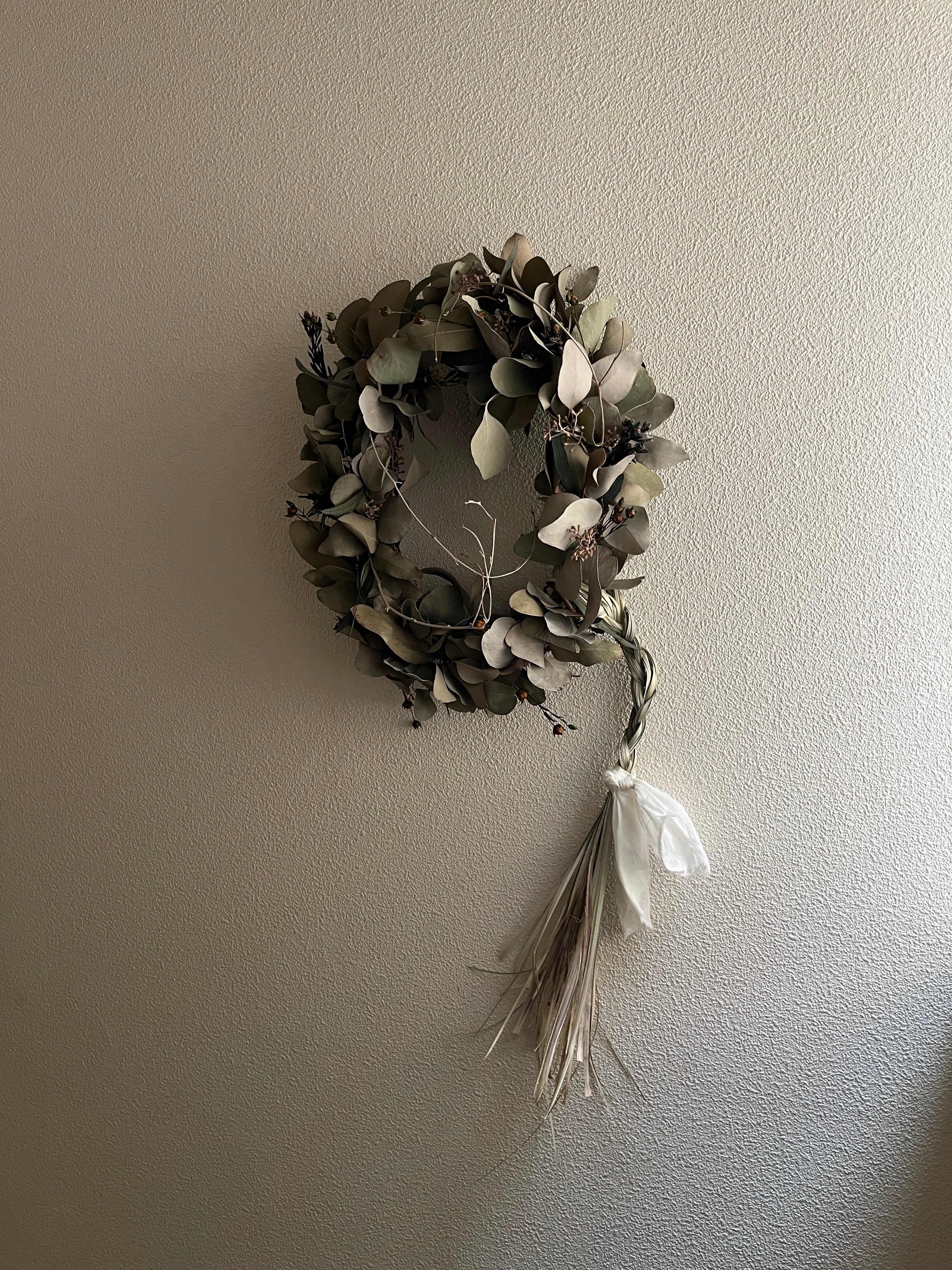リース全体に広がるユーカリの香りはリラックス効果を引き出し