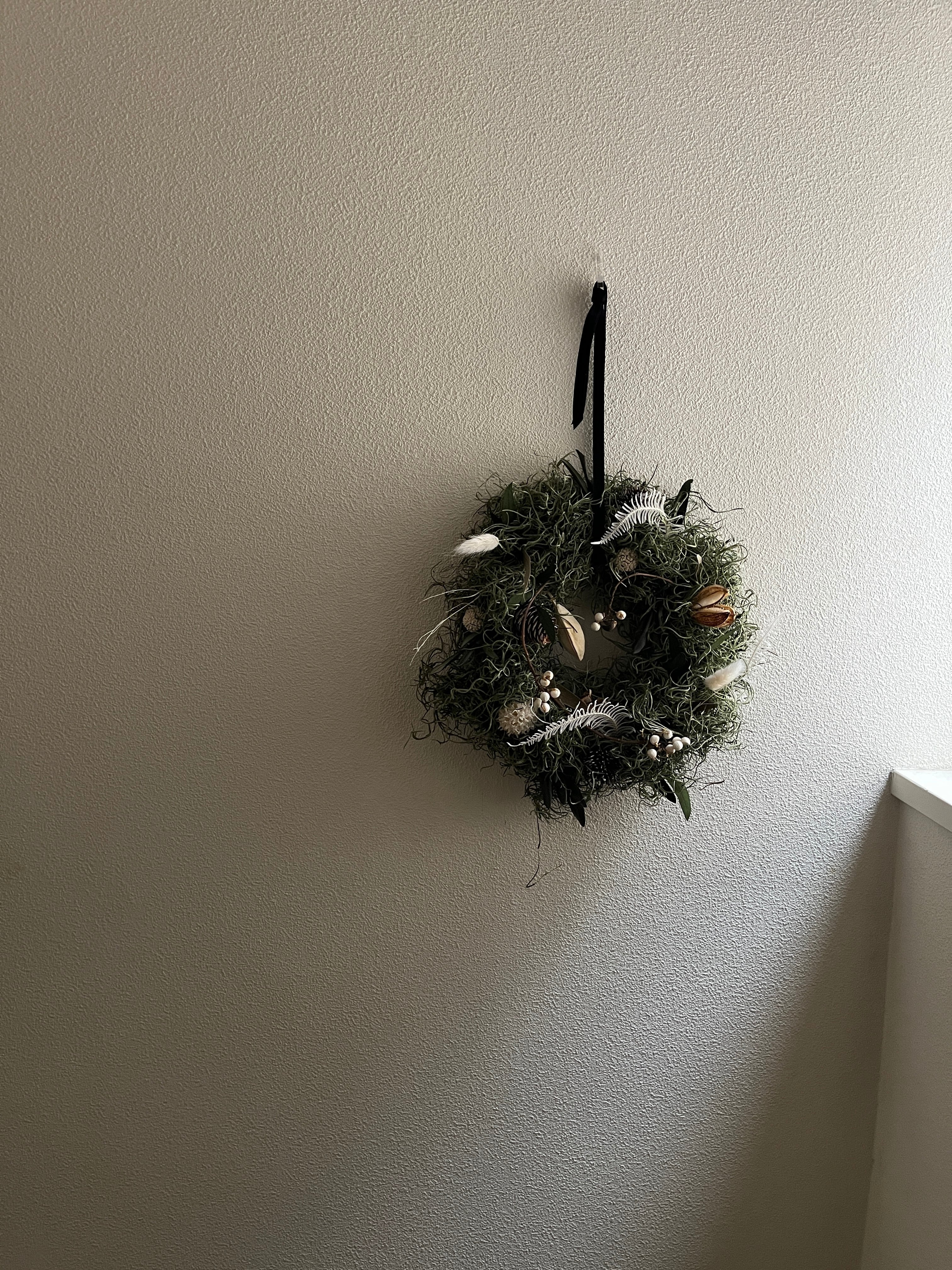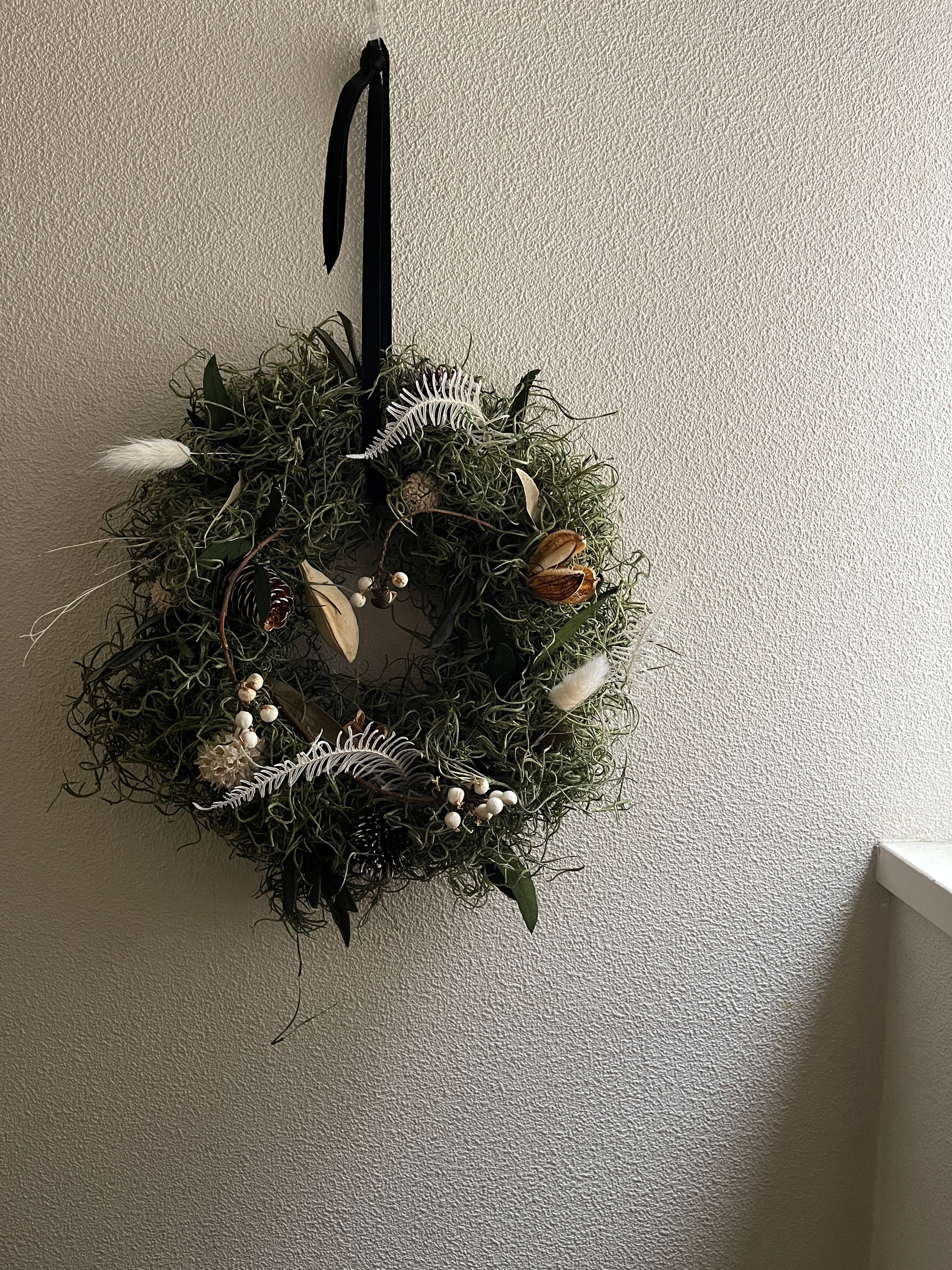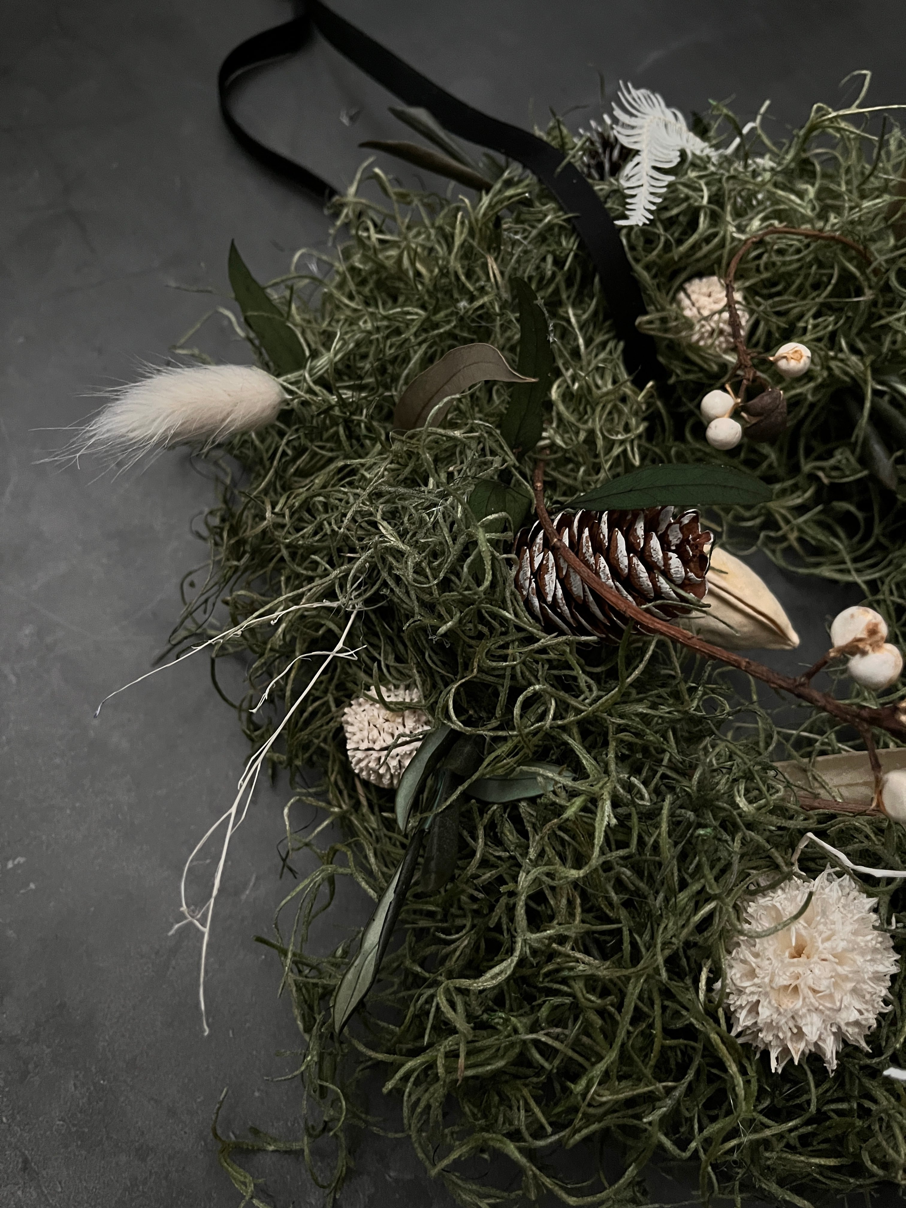 様々な植物を組み合わせたこのリースは植物の造形を楽しみつつ