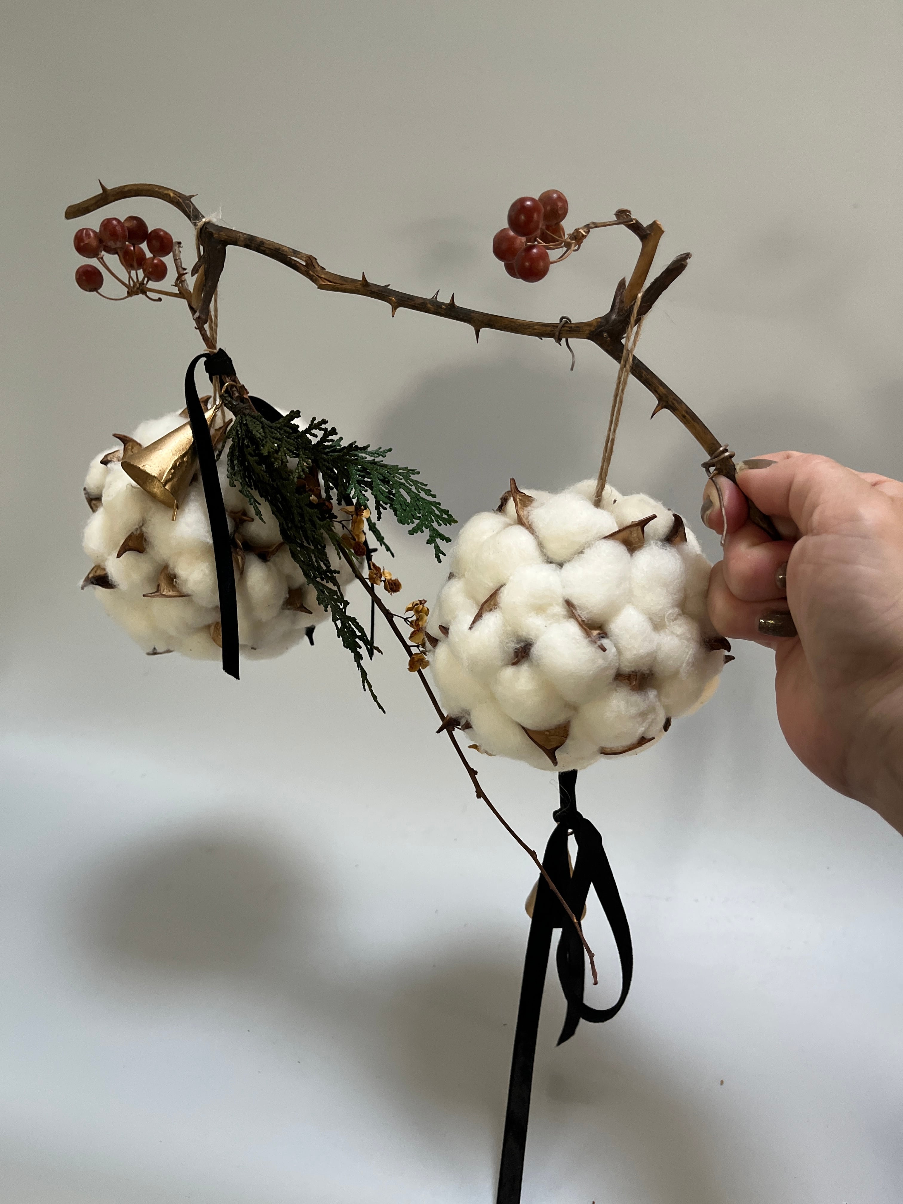 自然の美しさを感じるコットンフラワーオブジェです