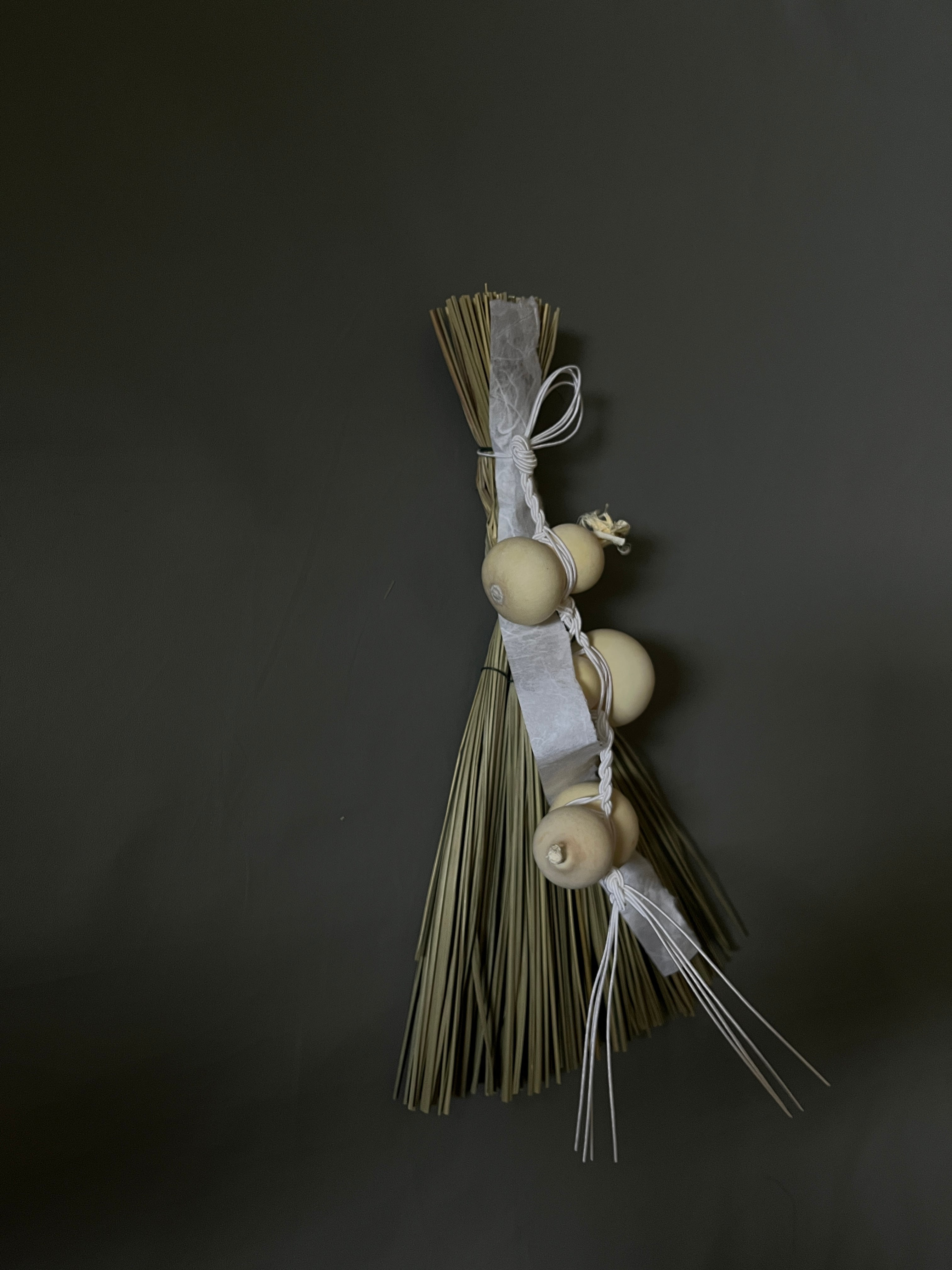 邪気を掃き清める箒(ほうき)のようにも見え、清らかに新年を迎えるというしめ飾りの