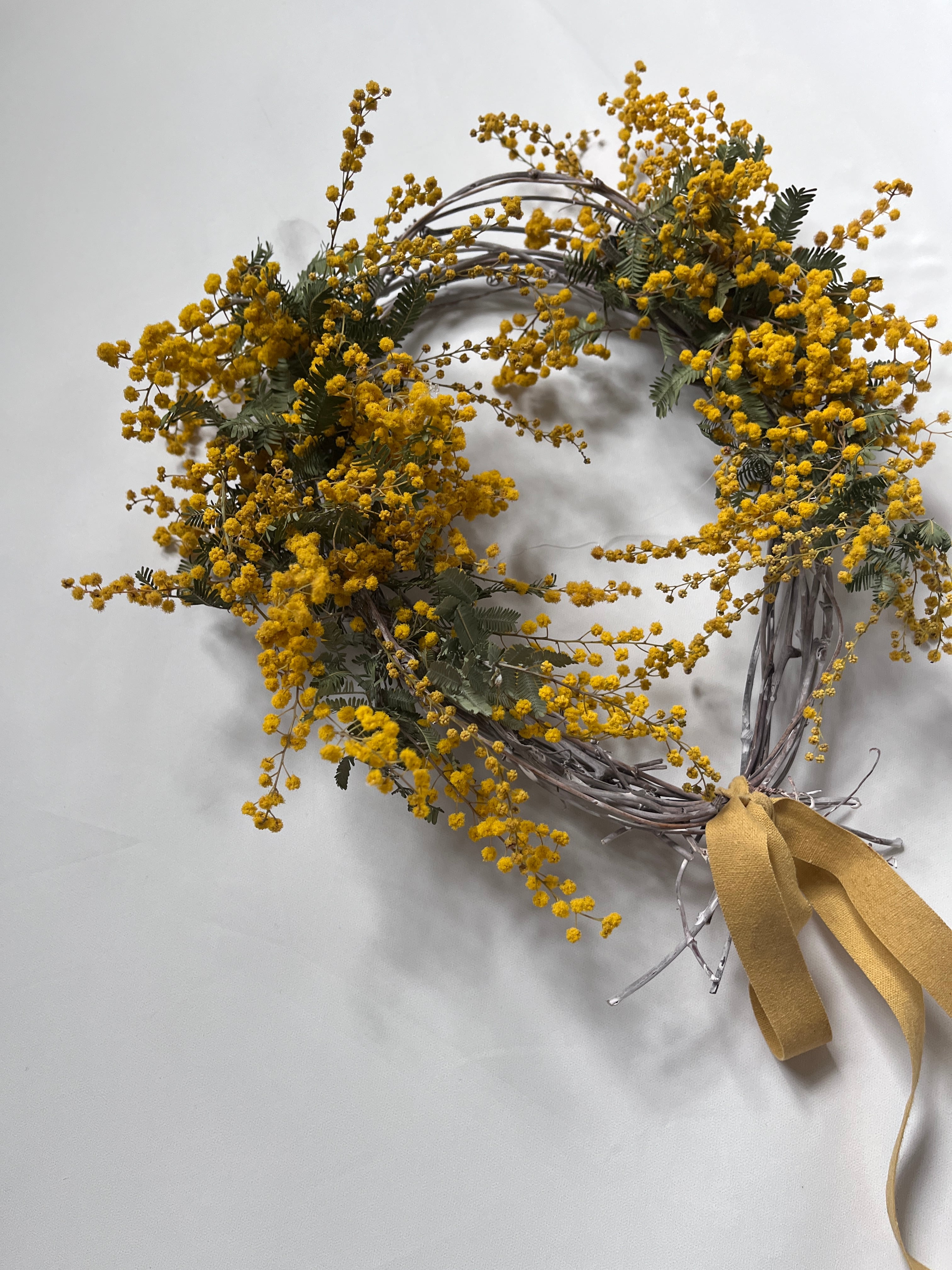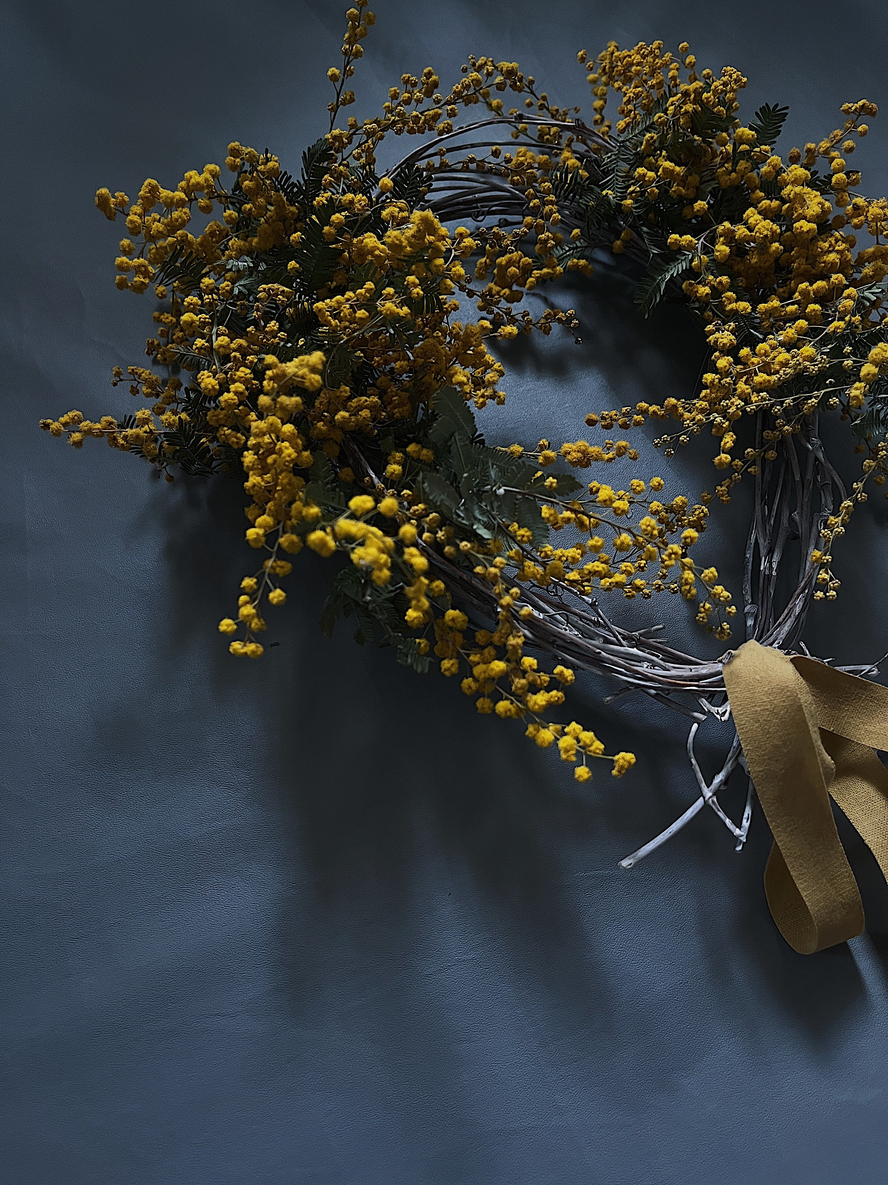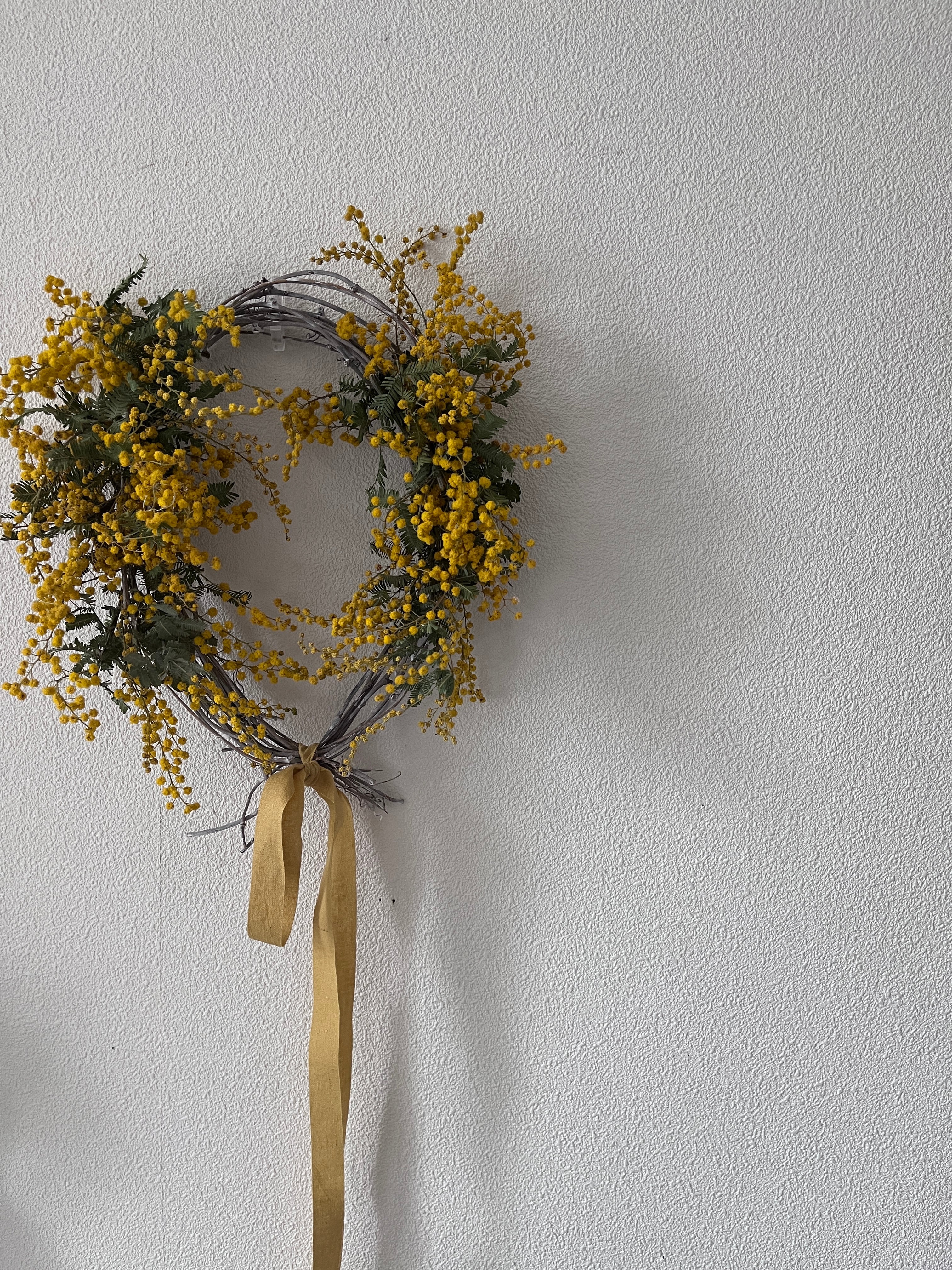 ミモザの柔らかいイエローの色合いがリビングや玄関などに飾るだけで
